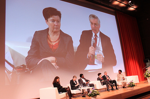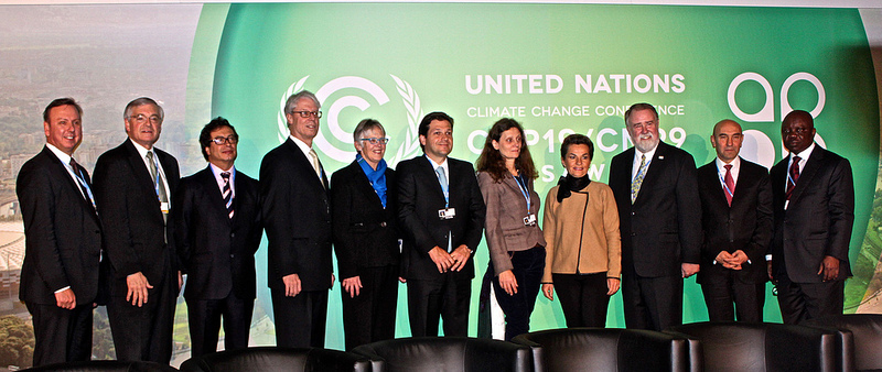 (l-r) ICLEI Secretary General Gino Van Begin, Mayor George Heartwell of Grand Rapids, USA, Mayor Gustavo Petro of Bogota, Colombia, Mayor Frank Cownie of Des Moines, USA, City Manager Penny Ballem of Vancouver, Canada, Mayor Julio Gerardo of Recife, Brazil, Deputy Mayor Angelica Kappel of Bonn, Germany, UNFCCC Executive Secretary Christiana Figueres, ICLEI President David Cadman, Mayor Tunc Soyer of Seferihisar, Turkey, and Governor Emmanuel Eweta Uduagdhan of Delta State, Nigeria.